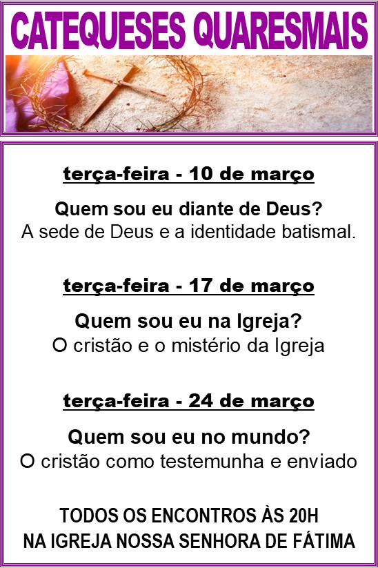 Que este Tempo de Quaresma seja proveitoso para todos nós, para as nossas famílias e para toda a nossa Comunidade.
